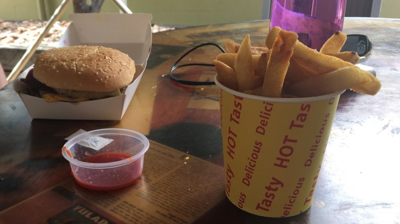 - kava, čaj, burger, krompirček = 30,5 AUD (20,2 EUR)
