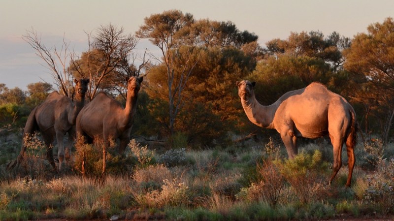 Kmalu po nadaljevanju sva ob cesti zagledala ducat divjih kamel. Enogrbe kamele so pred mnogimi desetletji domačini pripeljali v Avstralijo z Bližnjega vzhoda za pomoč pri delu. Le te so se v letih tako zelo razmnožile, da jih je danes veliko preveč. Mnogi so si jih udomačili, ogromno število pa je divjih in živijo v avstralskem outbacku. Bile so zelo lepe, saj so se nastavljale zadnjim sončnim žarkom. Bile so presenetljivo mirne in prav radovedne. Kljub temu, da sva ves čas vozila 100 km/h in da se je vmes ura prestavila nazaj za 1,5 ure, naju je ujela noč. Vmes sva se morala tudi ustaviti, saj so prevažali ogromen tovor in so se nama morali umakniti. Zadnjo uro oziroma zadnjih 100 km sva tako vozila v trdi temi. Takrat sva spoznala, zakaj se v Avstraliji ne vozi ponoči. Ogromno število živali vam prečka pot in je zelo nevarno. Kenguruji so gledali iz vseh grmov in nama seveda skakali pred avtomobil. Žal sva enega pri tem tudi povozila in upala, da je avto preživel. Ko sva pripeljala v Laverton po 1.200 km in 15-ih urah v avtomobilu, sta naju pred kampom pričakala še dva razjarjena dingota (divji avstralski pes), tako da nisva upala niti iz avtomobila. K sreči se je pojavila lastnica kampa in nama odprla vrata. Če nimate vnaprejšnje rezervacije, se mnogi kampi zaprejo že ob 17h. A so tam vedno telefonske številke, kamor lahko pokličete in vas prijazno pridejo spustiti v kamp. Samo še tuš in spanje.