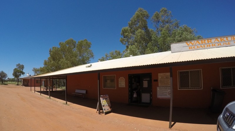 Na celotni poti sva se ustavila trikrat v obcestnih roadhousih. Vmes ni ničesar, tako da nimate kaj početi. Vsakih cca. 400 km si tako dotočite gorivo in se malce okrepčate. Na prvi postojanki v Warakurni sva dotočila gorivo ter popila kavo in čaj. Vse skupaj je izgledalo še zabavno. V prodajalno so vstopili Abirigini z majhnimi otroci, ki so bili res prikupni. Družina je kupila nekaj priboljškov in odšla. V drugi postojanki v Warburtonu pa ni bilo več tako zabavno. Bil je čas kosila in sva hotela tudi nekaj malega pojesti. Ponudba je bila praktično grozljiva – ocvrt krompirček in pa kakšen kos ocvrtega mesa. Hm, niti približno ne izgleda vse skupaj. Priviščila sva si le ocrt krompirček in hitro nadaljevala. V mini prodajalno iz povojnega obdobja so se namreč zgrinjali Aborigini, ki niso prav nič veseli belcev. Obratno! Na njihovih obrazih je ves čas razbrati sovraštvo, ki ga gojijo do belcev. Midva sva bila tam popolnoma sama in bilo je res strašljivo. Kupujejo le cigarete in alkohol, otrokom privoščijo čips in sladoled. Vpijejo na zaposlene, ker morajo plačevati za dobrine. Midva sva dobesedno obnemela in se hitro pobrala dalje. Aborigini dobivajo socialno podporo, s katero si privoščijo cigarete in alkohol. Škatlica cigaret stane kar 35 AUD (23 EUR) v Avstraliji in si jih vsi redno kupujejo. Do tretje postojanke sva pripeljala pozno popoldan. Tjukayirla je bila bolj urejena, lastnika sta bila prijazna in jeznih Aboriginov ni bilo na spregled. Povsod so v hladilnih vitrinah prodajali kengurujeve repe, saj jih Aborigini zelo radi jedo. Po kavici in čaju sva se odpeljala še zadnji del. Opozorila sta naju na nevarno vožnjo ob sončnem zahodu, saj je na cesti ogromno število kamel in kengurujev ob tej uri. Tam enostavno nisva želela prespati. Želela sva si malce več civilizacije.