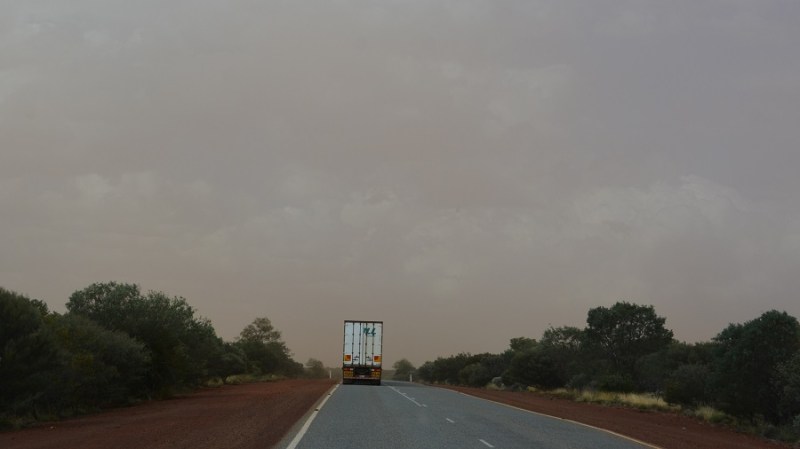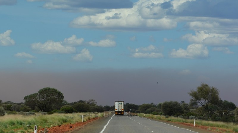 Naslednja bencinska črpalka je bila v Kumarini. Vmes pa nič. Ker še ni bilo dovolj dogodivščin za tisti dan, naju je pričakal še peščeni vihar. V daljavi sva videla roza obzorje, pa nisva niti vedela, kaj bi to bilo. Bolj ko sva se približevala, bolj čudno je postajalo in močnejši veter sva čutila od strani. Pihalo je kar 160 km/h, tako da v Kumarini nisem mogla odpreti niti vrat avtomobila. Natočiva gorivo, si privoščiva burger in krompirček ter skoraj že nadaljujeva pot. A naju domačini prijazno opozorijo, da ni varno. Naj raje tukaj prespiva in nadaljujejva zjutraj. Ob šanku je sedel gospod, ki ima v lasti 2.500 glav govedi, 1 milijon akrov veliko posest in vsako leto 7 milijonov dolarjev prihodkov. No, to pa so pravi avstralski posestniki. Da te vrže na rit. In on lepo pije hladno pivo, govedo pa se pase po puščavi in točno zna priti nazaj do kmetije po nekaj dneh, tednih, mesecih. Kako se vsa živina napaja? Z zalogami arteške vode, ki jo najdemo pod tretjino površine Avstralije. Le ta je ujeta med plasti kamenin in je ponekod zelo plitvo, drugod pa tudi 1000 metrov globoko. Arteška voda je oblika podtalnice in je ujeta v 19 medsebojno ločenih arteških bazenih. Največji med njimi je Veliki arteški bazen, ki zavzema nepredstavljivih 1,5 milijona km2. Leži v osredjem delu celine v zaledju Velikega razvodnega hribovja. Arteška voda je edini vir, ki služi namakanju, napajanju živine, domači uporabi in celo oskrbi mest kot npr. Alice Springs. Ker je voda pogosto polslana, jo morajo za pitje najprej razsoliti.