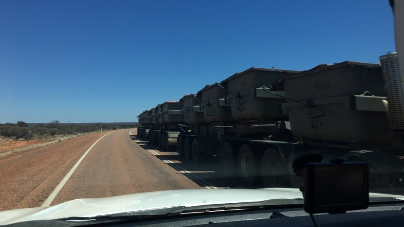 Najin dan sva začela sva res zgodaj. Po hitrem zajtrku sva spakirala in na dolgo pot. Čakalo naju je vsaj 700 kilometrov poti. Če bi bila pri volji, pa mogoče še več. Nisva vedela, kaj naju zares čaka na poti. Pričakovala sva lepo asfaltirano cesto, pa ni bilo čisto tako. Mislila sva, da sva že včeraj opravila z vsem makadamom. Prvih 400 kilometrov do Wilune sva dokaj dobro preživela. Vozila sva se po lepi pokrajini, sonce je pripekalo, nisva delala postankov. Na vsaki strani ceste so bile oznake za zasebne rudnike. Levo in desno vso pot dovozi do rudnikov zlata, niklja, železa, bakra, urana, litija… Zaloge bogatih rudnin so v tem delu Avstralije neverjetne. Celotna zahodna Avstralija seveda živi od in za izkopavanje bogatih rud. Šele sedaj se nama je posvetilo, kako je lahko Avstralija tako bogata celina. Ja, rudniki, rudniki, rudniki. Največja izvoznica diamantov na svetu, druga največja izvoznica zlata, nafta in zemeljski plin ter vse ostalo. Noro, ko vidiš kakšne rudnike in kakšno mehanizacijo tukaj uporabljajo za izkopavanje. Neverjetno. In mimo naju so drveli samo cestni vlaki s štirimi prikolicami. Uau, kakšni kamioni.