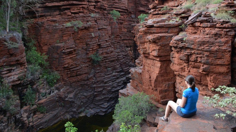 Po mirni noči sredi avstralske divjine v eko kampu sva se po zajtrku odpravila na krajši treking. Na poti do tolmuna sva videvala ogromne termitnjake. Tečne muhe so naju popolnoma spravile ob živce, pa tudi pot ni bila ravno varna in prijazna, tako da sva skrajšala pot in se z avtomobilom odpravila dalje. Končno na morje, na zahodno obalo, a do tja sva morala prevoziti še dolgih 674 km. Ponovno precej kilometrov makadama, neposeljena pokrajina in ogromno število pisanih papig, ki so nama letale pred avtomobilom. Na poti sva videla tudi precej velik požar v daljavi, divje konje in emuje. Na polotoku Exmouth, ki leži na skrajnem severo-zahodnem delu Avstralije, je ogromno število ovac in kengurujev, zato je potrebna zelo previdna vožnja. Pozno popoldan sva končno prispela v kamp, kjer sva se udobno namestila in si skuhala pozno kosilo v družbi belih papig. Frajerke! Prav nič se ne bojijo ljudi.