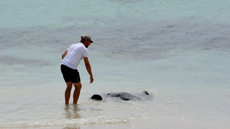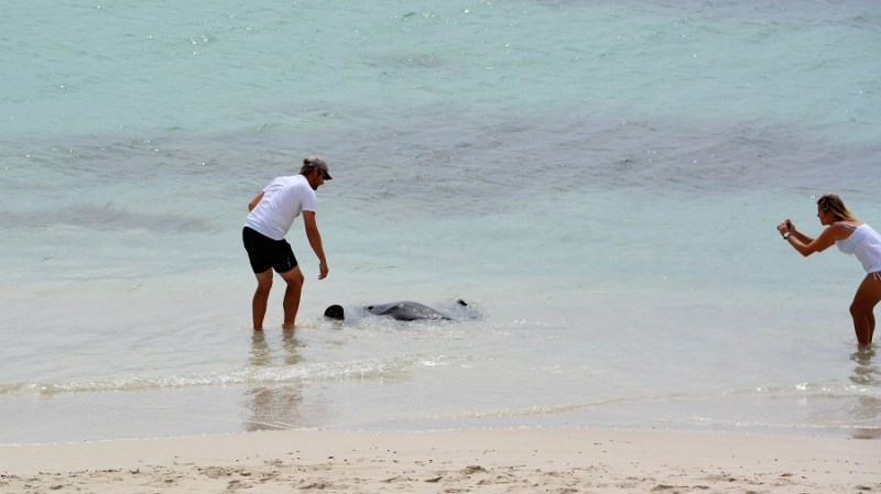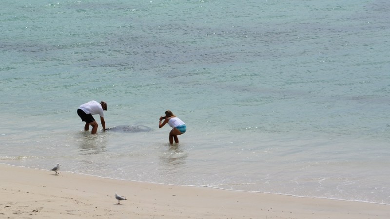Z vožnjo sva nadaljevala do zaliva Hamelin mimo mesta in pokrajino Margaret River mesta, ki slovi po vinogradih in ostalih pridelkih. Zemlja je v tem delu Avstralije zelo rodovitna, hkrati pa imajo tudi veliko živine in zelo dobro govedino. Do zaliva Hamelin so naju spremljali grdi oblaki, a dežja ni bilo. Ko sva prispela do kampa, ki je edina infrastruktura v zalivu, sva se namestila. Kamp ima elektriko, ni pitne vode, je voda za umivanje in ni signala. Ni trgovine, je pa žar. Vse, kar potrebujeva. Sprehodiva se do plaže in zagledava že z vrha skate. Lepa in dolga plaža je čudovita, v morju pa čisto ob obali plavajo skati gor in dol. Obiskovalci jih slikajo, božajo in bežijo pred njimi. Skočim v vodo, da bi naredila posnetek, a skat me prijazno odrine v smislu – pojdi ven, to je moje okolje. Zbežim. Malo se jih pa res bojim. Vsi skakljamo, skati nas preganjajo, pustijo se pobožati. Res lepo doživetje. Večina se samo ustavi na poti in nadaljuje, tako da proti večeru tam ni bilo nikogar več. Plaža je zelo posebna. Že dvakrat so nasedli kiti na obali in sicer pliskavke. Nazadnje nekaj dni po najinem obisku je nasedlo več kot 130 kitov pliskavk. Razen štirih so vsi poginili. Žal ne vedo, zakaj se to zgodi. Je pa neverjetno, da so nazadnje nasedli kiti na isti dan pred desetimi leti.