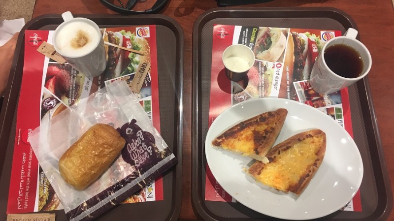 - zajtrk v Dohi na letališču = 17,7 EUR