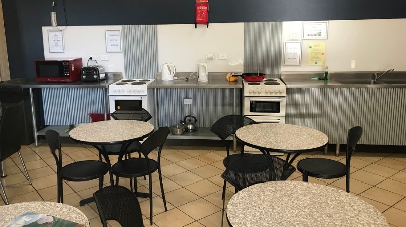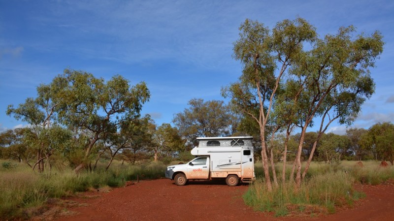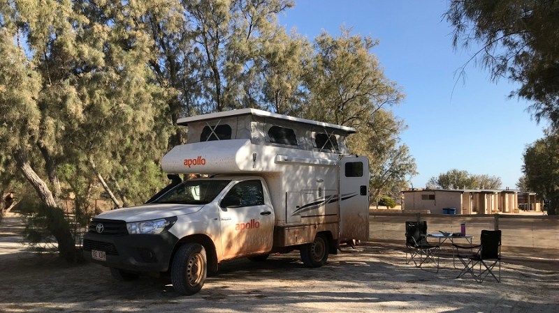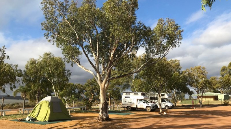 Naslednjih 21 dni sva spala po kampih in sicer če je bilo le možno z elektriko in vodo. Mesta z elektriko so bila običajno nekoliko dražja. V tem kampu sva celo malenkost doplačala in sva imela tudi svojo kopalnico. Imela pa sva tudi nekaj popusta, ker sva imela avtodom od Apolla. Sicer sva v kamp prispela zvečer, zelo je pihalo, bila sva utrujena, tako da sva zgodaj zaspala, zjutraj pa že odpeljala dalje. Imajo tudi bazen in zunanjo kuhinjo z žarom. To je običajna praksa vseh avtokampov v Avstraliji in nobena posebnost.