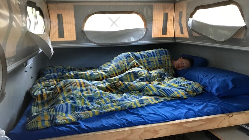 Po ogledih sva parkirala v mestni kamp pod tendo, saj bi se sicer dobesedno scvrla na žgočem soncu. Že tako in tako sva res pregorevala od vročine. Kamp je bil urejen in je imel tudi veliko kuhinjo, a brez klime, samo ventilatorji. Nekako sva le preživela, saj je začelo pozno zvečer močno pihati. V najinem bivalniku namreč nisva imela niti klime niti ventilatorja. Jasno nama je bilo kmalu, kakšno veliko napako sva storila pri najemu. A žal pri tem avtomobilu druge izbire ni, saj je klima le v voznikovi kabini, zadaj v bivalniku pa ne. Ventilator pa sva si tudi pozabila izposoditi.