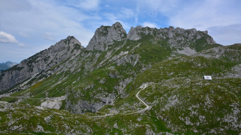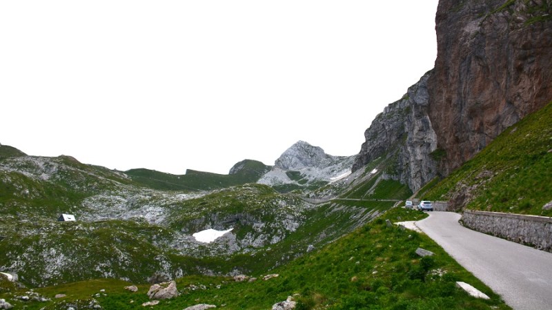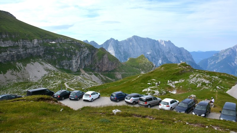 V začetku julija sva se na lepo nedeljo odpravila prvič (ja, oba prvič) v življenju na Mangartsko sedlo. Bila sva zgodnja, a mnogi so naju že prehiteli. Predvsem planinci, ki so se odločili za vzpon na vrh Mangarta. Ker vremenska napoved ni bila prav nič obetavna, sva si midva vzpon pustila za naslednji obisk. Do sedla sva se pripeljala iz italijanske smeri, plačala ekološko takso in se odpeljala do vrha po ozki gorski cesti. Cesta je čudovita, a res široka le za en avtomobil. K sreči smo tokrat vsi vozili le gor, tako da ni bilo težav. Vijugasta cesta ima lepe razglede in tudi dva zanimiva v skalo izklesana tunela. Cesta velja za najvišje speljano cesto v Sloveniji in je v celoti asfaltirana. Višinska razlika od odcepa do višine 2.072 m znaša kar 980 m. Na vrhu sva dobila parkirišče in se peš podala po sedlu. Zajtrk ob 8.30 z razgledom je bil čudovit. Čaka vas ducat razglednih točk v vse smeri neba in v dolino na Belopeška jezera. Pred vami se bohoti mogočni Mangart. Nazaj grede je bila vožnja večji izziv, saj je bilo zelo veliko avtomobilov v obratni smeri, a počasi se daleč pride.