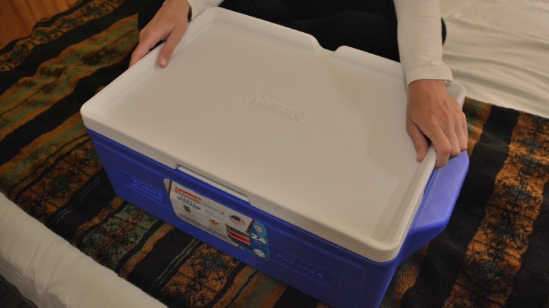 Proti večeru sva se samo še odpeljala do najinega motela v Mariposi po najbližji cesti. Hotel je bil v centru vasi in zelo osnoven. Pač, v Ameriki je treba malce stisniti zobe, saj so cene prenočišč res visoke v primerjavi s kakovostjo. Odpravila sva se tudi v trgovino, kjer sva si kupila “prenosno plastično skrinjo“, ki drži kar nekaj časa temperaturo. To je obvezni pripomoček za potovanje po zahodnih nacionalnih parkih, saj se ti sicer voda in ostala živila hitro pokuhajo v avtomobilu. Midva sva kupila manjšo in v njo vsak dan shranila mrzlo vodo ter nekaj osnovnih živil. V vseh motelih in hotelih imajo tudi brezplačen led, da si ga vzamete in vam dodatno ohlaja skrinjo. Midva ledu nisva potrebovala, ker je skrinja delala dobro tudi brez njega.