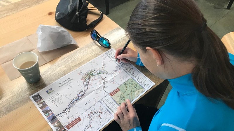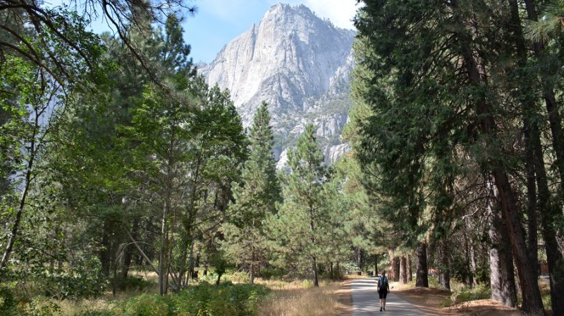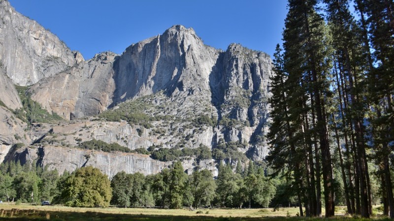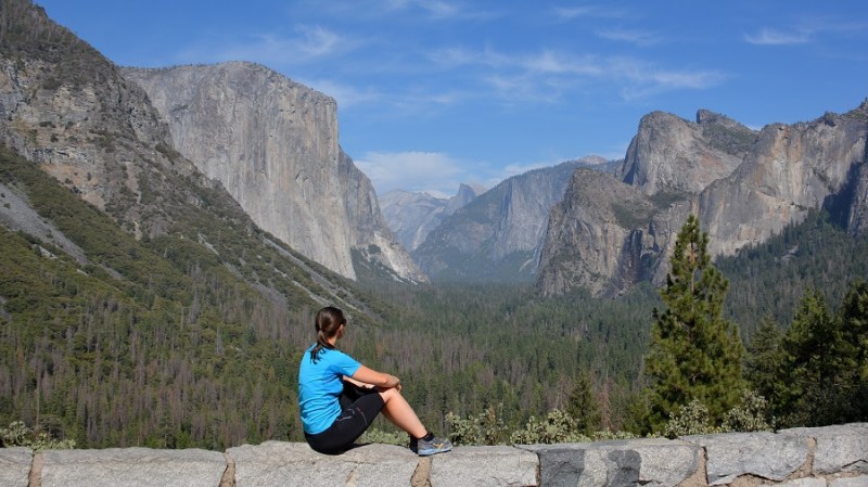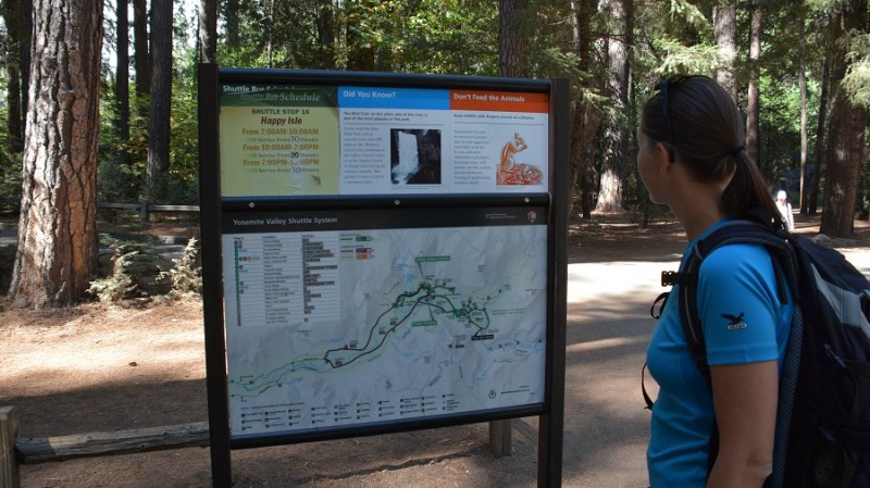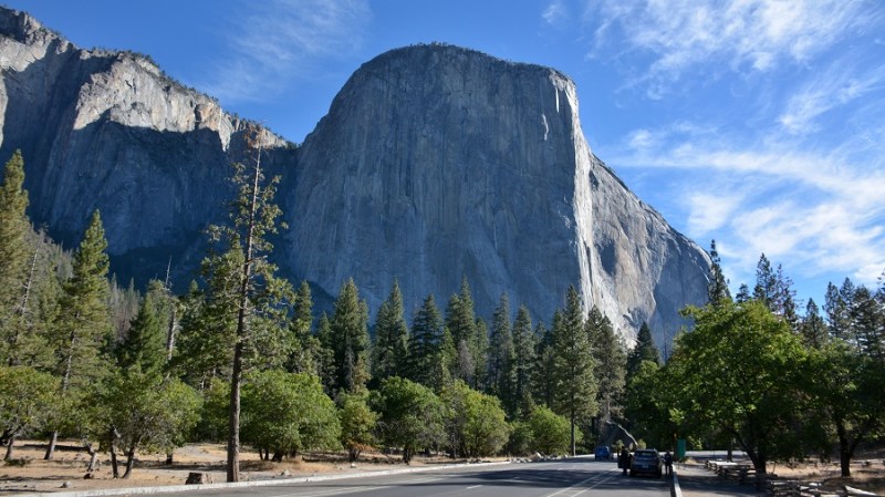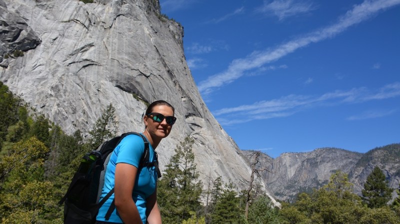 V parku poteka enosmerna cesta in takoj po vhodu zagledate veličastno steno gore El Capitan. Navpična skalna formacija granitnega monolita El Capitana meri v višino 900 metrov. Velja za eno najtežjih plezalnih sten na svetu in se plezalci zelo radi pohvalijo s tem dosežkom. Nadaljevala sva do centra za obiskovalce. Ameriški nacionalni parki so res do potankosti organizirani. Razgledne točke s parkirišči, označevalne table, stranišča, kontejnerji za odpadke, pitna voda… V glavnem – kot v pravljici. Na vsakem koraku vas opozarjajo za nevarnost srečanja z medvedom, ki jih je tukaj zelo veliko. Znotraj Yosemite parka sta dve večji vasici, kjer je tudi trgovina, restavracija in center za obiskovalce. Dobila sva karto parka in se odpravila na zajtrk, ki sva si ga kupila v trgovini. Ob zajtrku sva naredila plan dneva in se odpravila naprej.