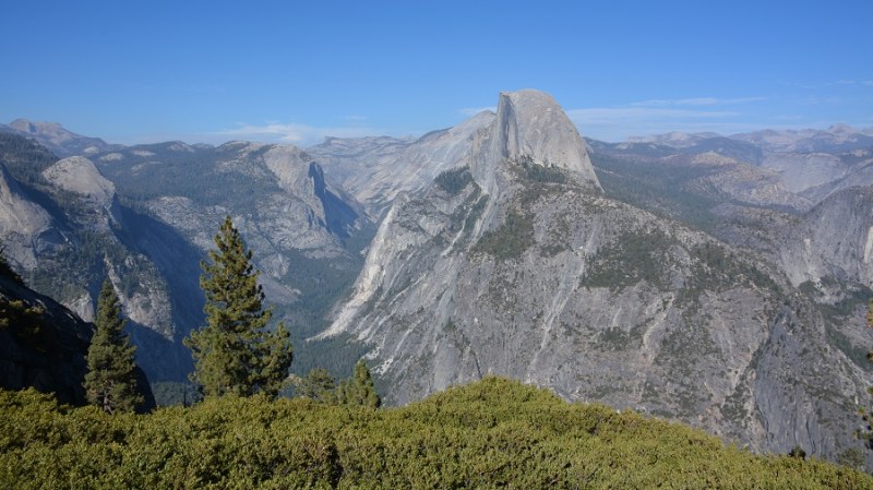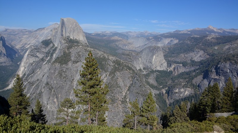 Oh, kako lepa cesta vodi do razgledne točke Glacier Point. Dvigate se visoko nad dolino, zato je tudi ozračje vedno hladnejše. Ob poti pa grozljivka nedavnega požara. Žalostno, a resnično. Posledice so velike, a narava ima svoje zakonitosti in mednje sodijo tudi požari. Na vrhu vas pričaka čudoviti razgled z druge strani na goro Half Dome in sosednje vršace nacionalnega parka Yosemite. Prečudovit zaključek dneva!