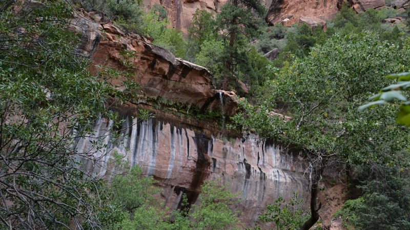 Malce sva bila že lačna, zato sva si na hitro privoščila košček pice v centru za obiskovalce, nato pa se sprehodila po zelo enostavni poti do Emerald Pools. Ker je bil september, so bili bazenčki skoraj prazni in tudi od slapu je ostal je mali prš. Žal nam, ki prihajamo iz dežele jezer, slapov in gora, težko prodajo te razgledne točke. Ampak sprehod je bil pa res lep. Na tem mestu lahko naredite tudi Kayenta Trail in pot do Upper Emerald Pools, a sta bili obe zaprti za vse obiskovalce.
