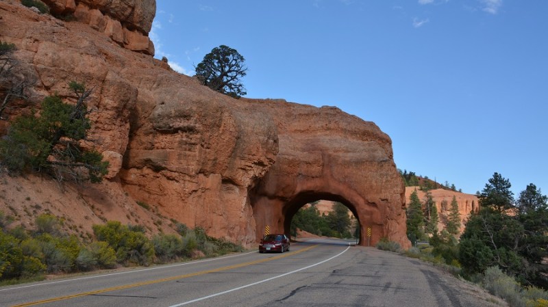 Z avtomobilom sva se komaj premikala, takšna gneča je bila tudi na cesti, ko sva se odpeljala proti nacionalnemu parku Bryce Canyon. Cesta pa je res izjemno lepa in nudi čudovite poglede na kanjon, vrhove, barvito pokrajino. Res lepo. Tu in tam sva se tudi ustavila ob cesti naredila kakšno fotografijo.