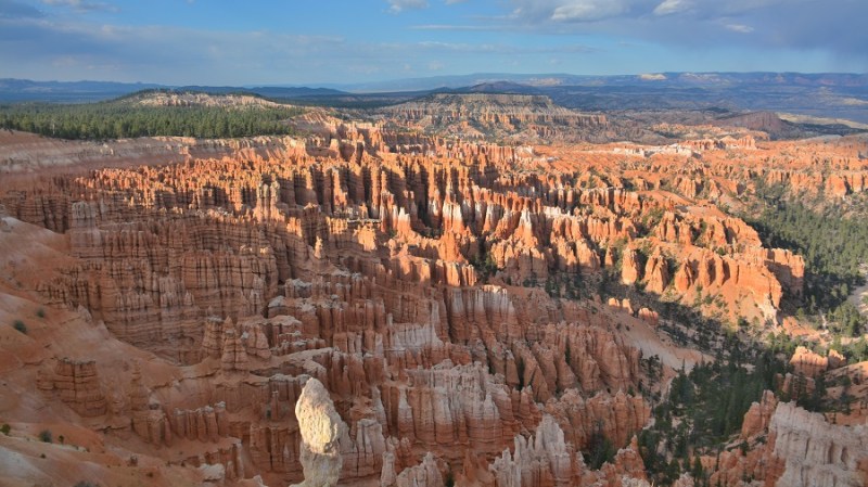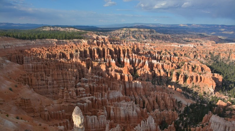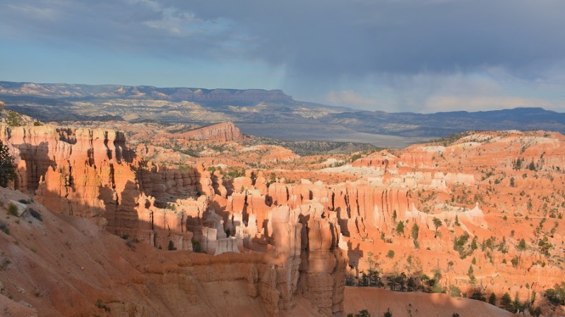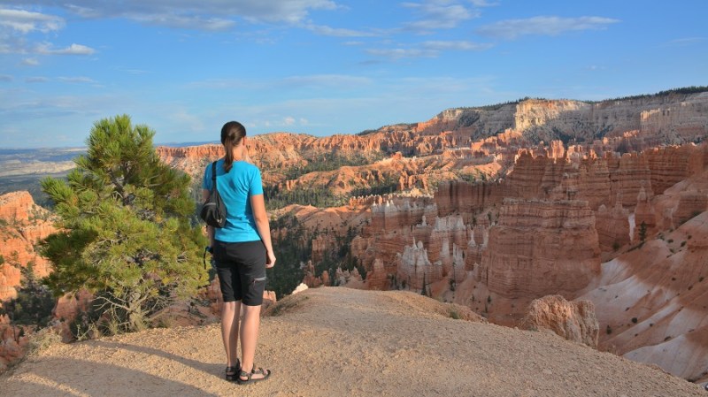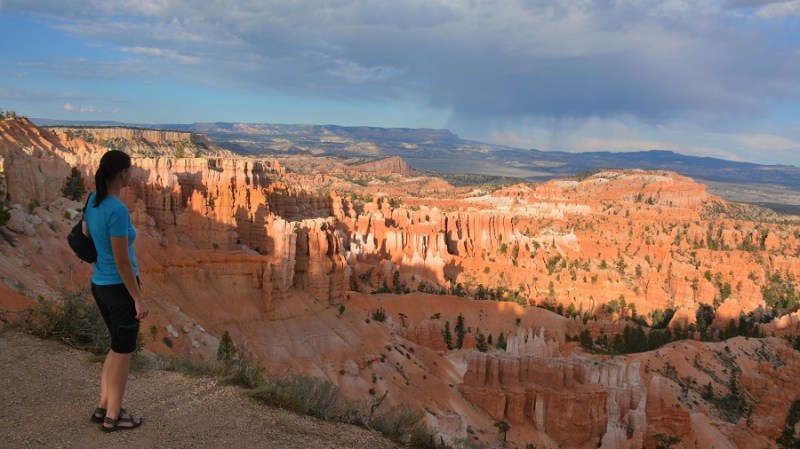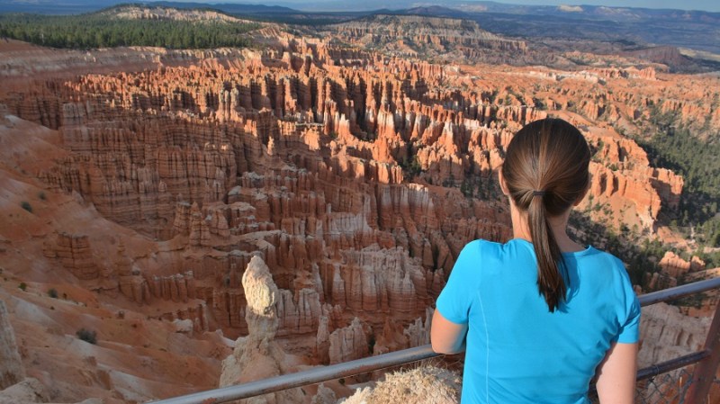 Do najinega naslednjega nacionalnega parka sva imela nekaj vožnje, tako da sva prispela v pozno popoldanskih urah in ujela sončni zahod. Odločila sva se, da greva na razgledno točko Inspiration Point, od koder je menda najlepši pogled na amfiteater kanjona. Ko stopiš v nacionalnem parku Bryce prvič ob amfiteater, pa doživiš res tisti občutek waw efekta. Ker si nad kanjonom ima res poseben čar. Kar nisem in nisem se mogla nagledati delu mati narave. Erozija je naredila prekrasen amfiteater, znotraj katerega še vedno rastejo iglavci in naredijo čudoviti kontrast med rdečkasto zemljo in zelenimi drevesi. Fantastika brez primere!