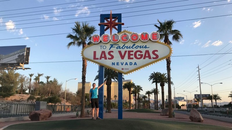 Nisva pričakovala dobrega spanca, saj Las Vegas živi ponoči. Pa ni bilo tako hudo. Spet sva na pot krenila že pred sončnim vzhodom in se odpeljala še do slovitega znaka Welcome to Las Vegas. To je sicer najboljša odločitev, ker menda čez dan čakaš v vrsti tudi več kot eno uro, da lahko narediš fotografijo. Midva sva bila sama. Pazite na stvari v avtomobilu na parkirišču, saj tatovi kar prežijo. Nekaj fotk, lep sončni vzhod ob letališču in vožnja po stripu naprej na sever.