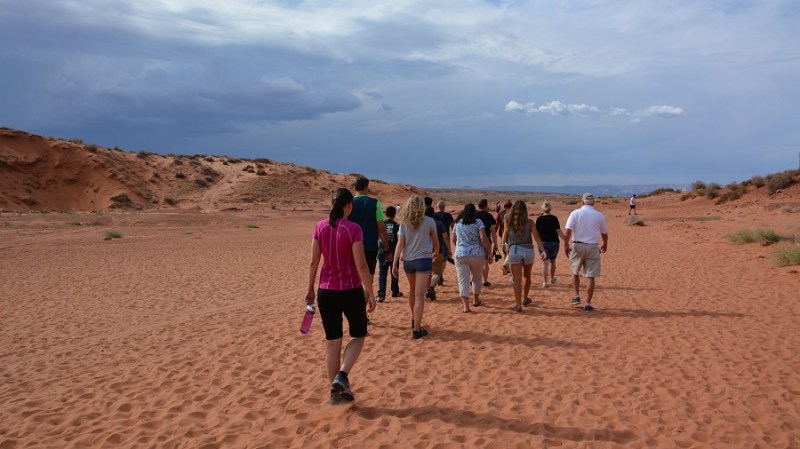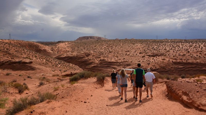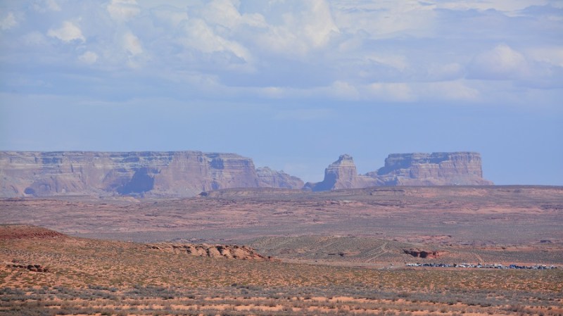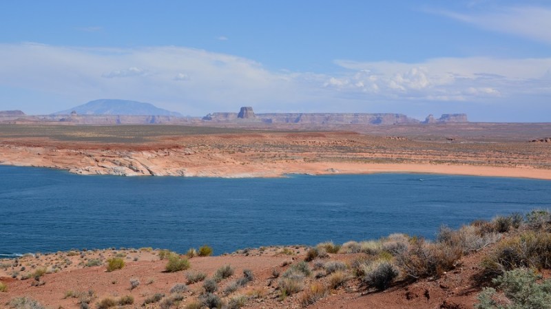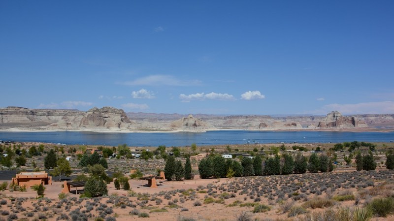Najpozneje ob 12. uri sva morala zapustiti Bryce kanjon, ker sva imela že vnaprej dogovorjen in plačan ogled kanjona Antelope pri mestu Page. Do tja sva imela 3,5 ure vožnje po lepi cesti. Pred prihodom v Page sva ponovno menjala uro in sicer za eno uro sva premaknila čas nazaj. Tokrat sva bila vesela menjave, ker sva privarčevala eno uro. Zavila sva z glavne ceste in vstopila še v nacionalni park Glen Canyon, ki velja za veliko rekreacijsko območje. To sva tudi videla na cesti, saj so vsi vozili iz ogromnega jezera Powell svoje ogromne čolne in zraven še ogromne prikolice. Veliko umetno jezero je nastalo z gradnjo jezu Glen na reki Colorado že leta 1963.