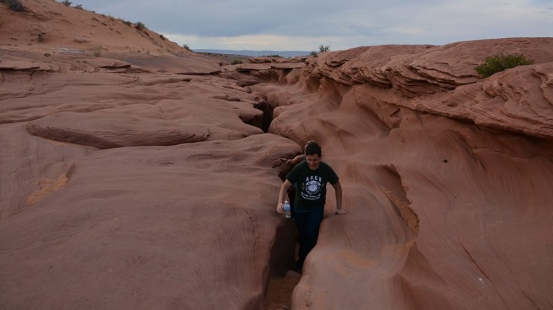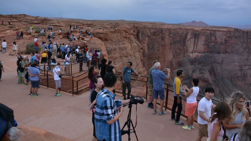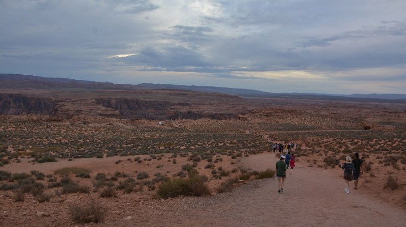 Proti večeru sva se podala še do razgledne točke Horseshoe Bend na reki Colorado. Na več mestih si je reka Colorado res izbrala zavito pot in izdolbla čudovite ovinke. Ena od najbolj znanih razglednih točk je Horseshoe Bend, kjer so tudi lepi sončni zahodi. Od parkirišča do razgleda je kar nekaj hoje po mivkastem terenu. Že misliš da si tam, pa moraš še kar nekaj prehoditi. A ko prispeš do razgleda, je neprecenljiv občutek. Res krasen pogled na enega od mnogih zavojev reke Colorado. Bilo je oblačno, tako da od sončnega zahoda žal nič. Je bilo pa vseeno res čudovito. Bila sem pa kar malce žalostna, kaj vse so ljudje pripravljeni narediti za “selfie”. Lazijo po pečinah nad prepadom in ogrožajo sebe in svoje najbližje. Res so neverjetni!