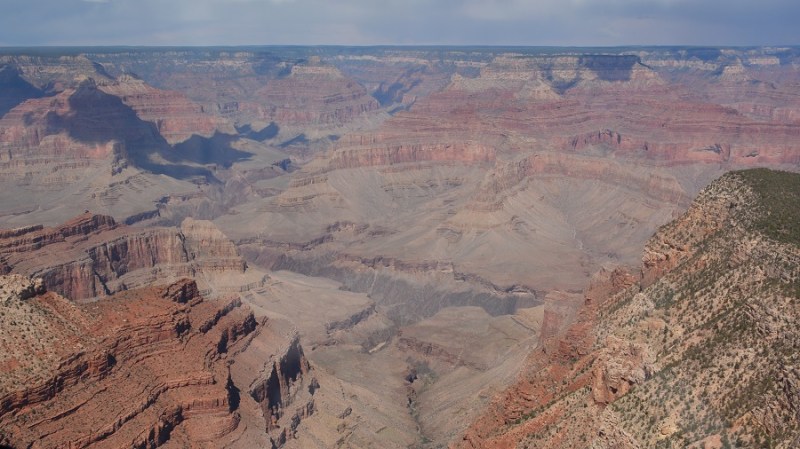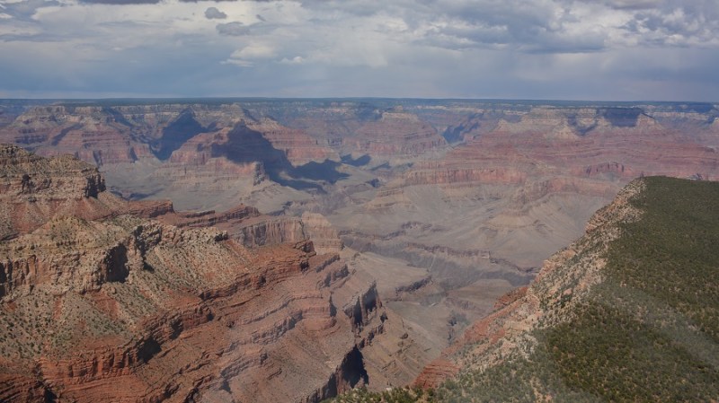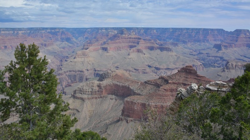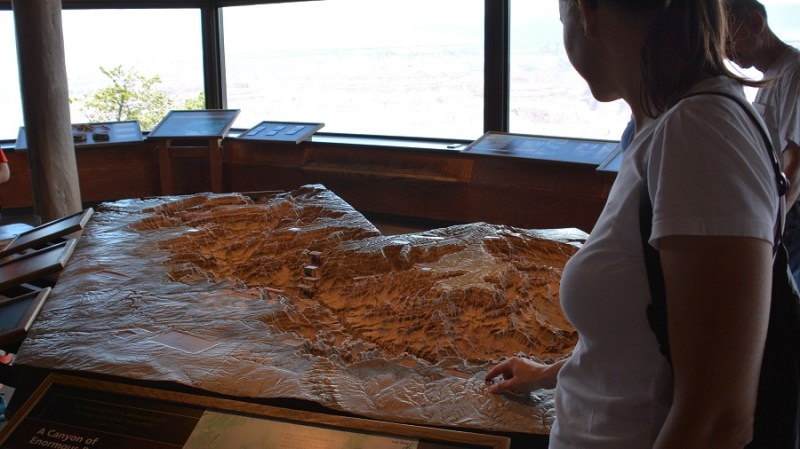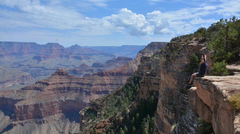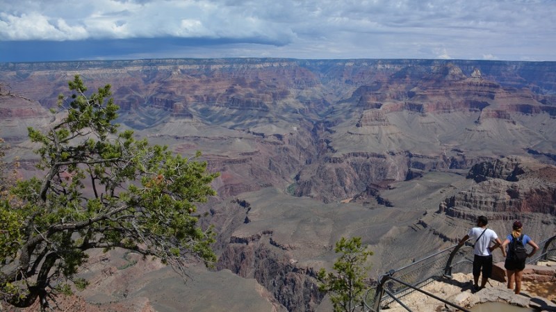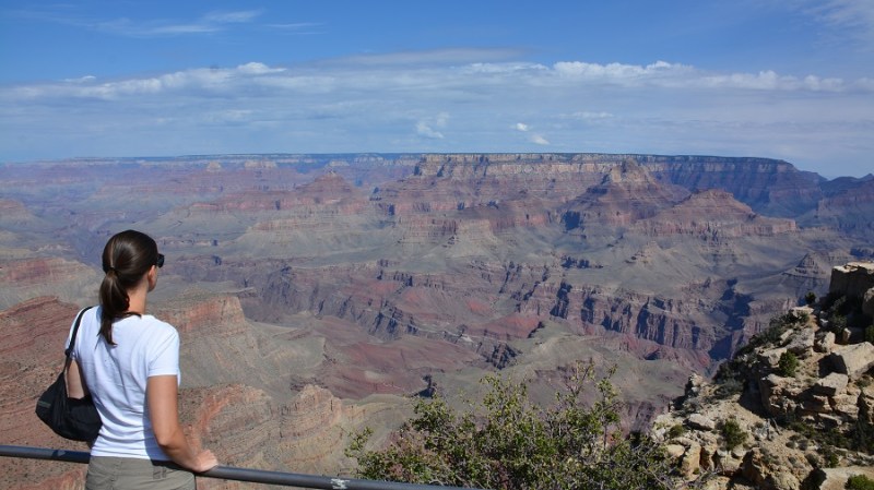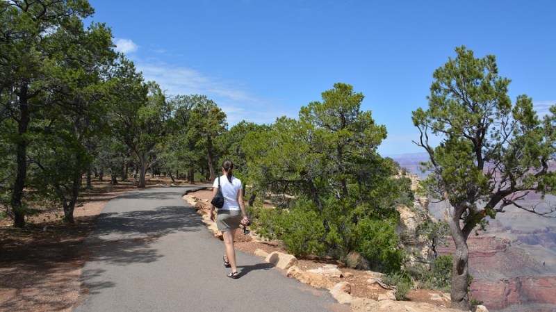 Že od samega začetka sva planirala le ogled kanjona z južne strani, ki je seveda tudi najbolj oblegana. Severna stran je praktično zelo nerazvita in ima zato zelo malo obiskovalcev ter še več naravnega okolja. Najina naslednja postojanka je bil center za obiskovalce, kjer sva parkirala avto na označenih ogromnih parkiriščih. Od tam vozi do nekaterih razglednih točk brezplačen avtobus, saj je z avtomobilom vožnja prepovedana. Najprej sva si ogledala Mother Point, ki je ena najlepših. Nato pa sva se sprehodila ob kanjonu po South Rim Trail ter občudovala kanjon na vsakem koraku. Res prečudovito in na vsakem koraku lahko narediš prekrasne fotografije. Končala sva na razgledni točki Yavapai, kjer je tudi manjši muzej in razgledna ploščad za opazovanje kalifornijskih kondorjev. Midva sva jih lahko kar nekaj naštela med obiskom.