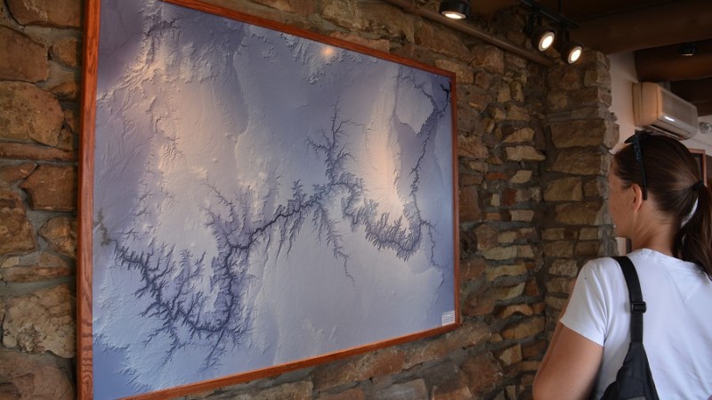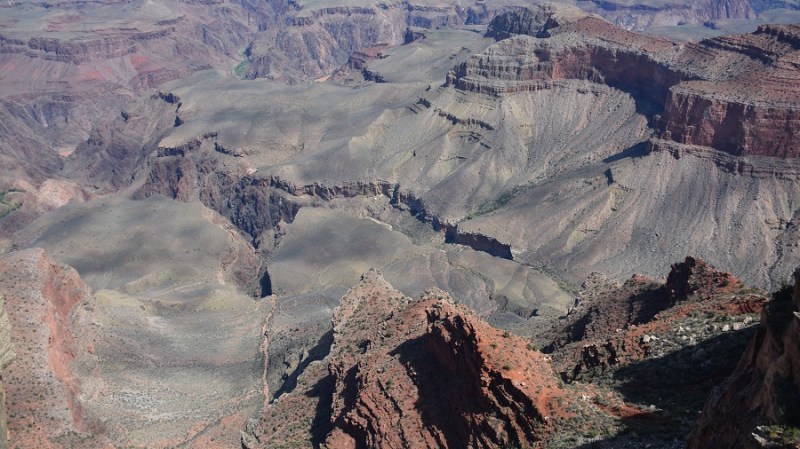 Iz hotela sva se odpravila v jutranjih urah in imela do vstopa v park dve uri vožnje. Prispela sva veliko pred večino drugih obiskovalcev, tako da sva imela praktično prvi dve razgledni ploščadi le zase. Najprej sva se ustavila na čudoviti razgledni točki Lipan Point, kjer sva prvič zagledala Grand Canyon. Uau! Res noro lepo, gromozansko in navdihujoče. Sploh nisva govorila. Le gledala. Šele po nekaj minutah, sva začela fotografirati. Neverjetno delo mati narave skozi milijone let. Ogromna reka Colorado, ki je dolga kar 2.333 km, si je utirala pot skozi puščavsko pokrajino in ustvarila prečudovito naravo. V tem delu je ustvarila čudoviti kanjon, ki je dolg celih 446 km, širok od 6 do 29 km in globok 1,6 km. Nepredstavljivo. Ko stojiš na razgledni ploščadi, komaj vidiš reko Colorado, ki je tako zelo majhna z višine. Izvor kanjona pripisujejo 17-im milijonom let. Kanjon ima več slojev, ki so lepo vidni. Razlog za to so seveda različno odporne kamnine v posameznih zemeljskih plasteh, nastalih v zelo različnih obdobjih.