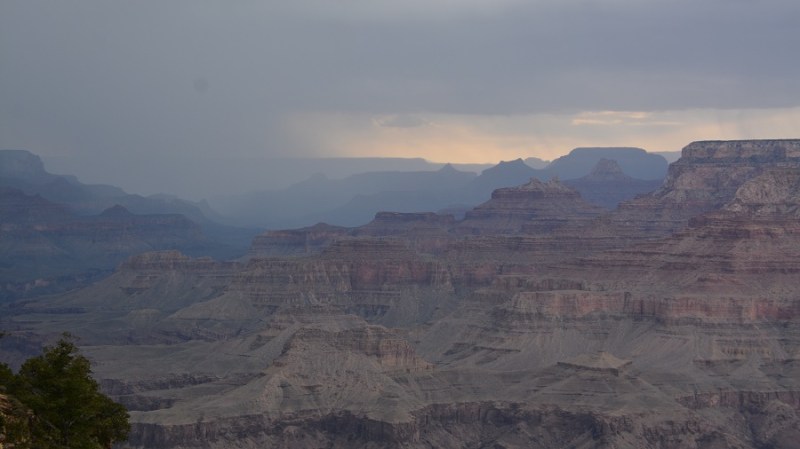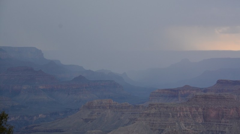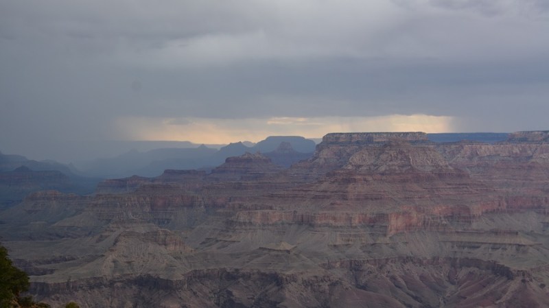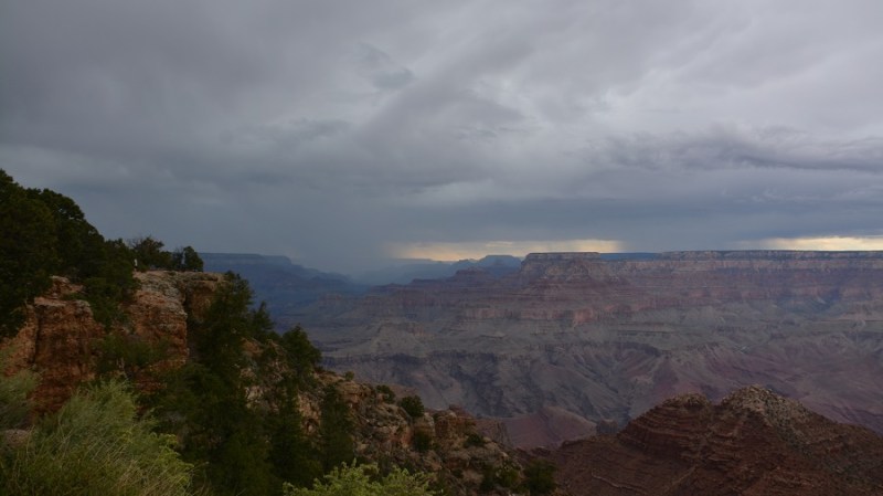 Po ogledu filma sva imela seveda še veliko planov, kako si bova ogledala kanjon še z razgledne točke na zahodu kanjona in tam pričakala sončni zahod, a vreme je splaniralo drugače. Ko sva prevzela avto, sva se glasno smejala, zakaj imava gretje sedežev. Oh, kako nama je prišlo prav. Tisti dan in še mnogo dni v prihodnje. Krenila sva naravnost proti hotelu v Tuba City. Ustavila sva se samo še na razgledni točki Grandview Point, ki sva jo zjutraj izpustila in naredila nekaj fotografij z nevihto znotraj kanjona. Mraz nama je segel do kosti.