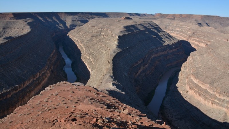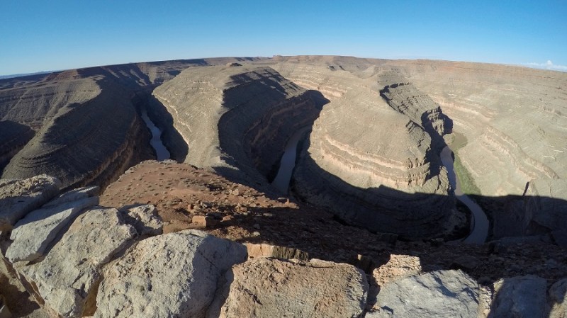 Čakalo naju je tri ure vožnje do nacionalnega parka Arches. Vmes sva malce še zavila z glavne ceste in se odpeljala v državni park Goosenecks. Plačala sva majhno vstopnino, ker za državne parke ne velja letna dovolilnica za nacionalne parke. Najlepša razgledna točka je kar na parkirišču, kjer je tudi simpatičen kamp. Priporočam, če boste kdaj kampirali v teh koncih sveta. Sicer pa lep razgled na reko San Juan, ki je presneto zavila svojo pot. Trikrat ostro zavije na tej razgledni točki, seveda pa na svoji poti še mnogokrat. Mati narava se je tukaj res na veliko poigrala. Vse skupaj pa je tako veliko, da žal ne gre v kosu v fotografski objektiv.
