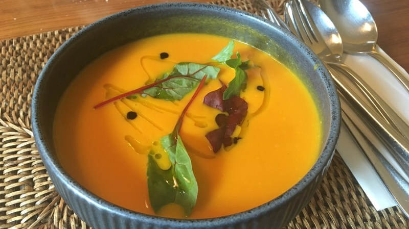 QLINARIKA: Bučna juha, rezanci z gamberi in ramsteak taljata