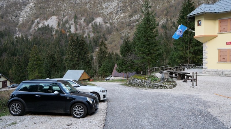 Sredi novembra sva se končno odpravila do Krnskih jezer iz doline Lepene, ki sva jih imela v planu že od zgodnje spomladi. Poleti bi seveda bilo topleje in lepše, a gneča čez prelaz Vršič, v Lepeni in tudi ob Krnskih jezerih nama res ni ljuba. Med vikendom vedno iščeva čim več tišine in miru v naravi. Sredi novembra se je obetal sončen, a že precej mrzel dan. Ko sva se okrog devetih zjutraj peljala najprej do Kranjske gore, pa so bili vsi hribi zaviti v goste oblake. Sva že kar malce zavijala z očmi in prelaz Vršič prevozila brez srečanja z drugim avtomobilom. Ko sva prišla na vrh prelaza, zagledava modro nebo na drugi strani. Pojavil se je nasmeh na obrazu. Tudi drugo stran prelaza in celotno Trento do Lepene sva prevozila s srečanjem le dveh avtomobilov v nasprotno smer. Čista poezija za voznico mojega kova.