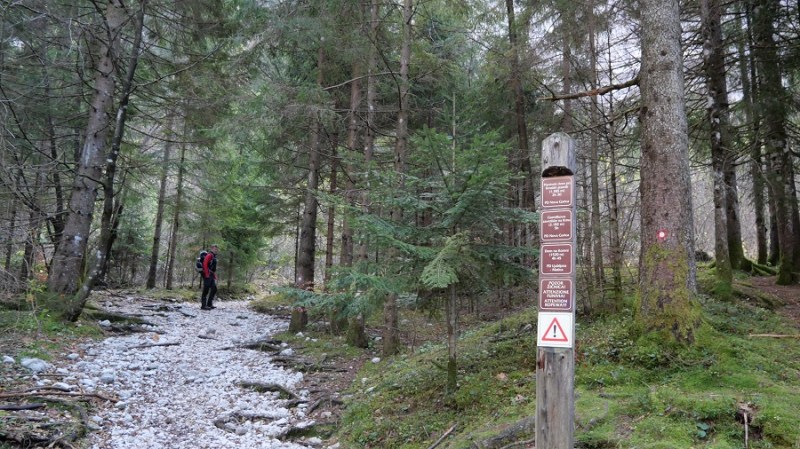 V Lepeni sva parkirala na parkirišču ob domu dr. Klementa Juga in se podala v hrib. Pot je čudovita. Ves čas hodite sicer v senčni strani po široki markirani poti z majšim naklonom. Vseskozi hodite po bukovem gozdu. Šelestenje velike količine odpadlega listja mi je seglo do srca. Ko pridete do zgornje postaje žičnice, se pot položi in do Krnskega jezera nadaljujete v desni smeri. Koča ob Krnskih jezerih se nahaja na levi poti, a je bila že tokrat zaprta.