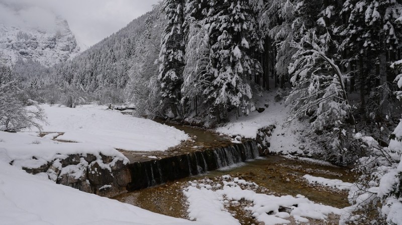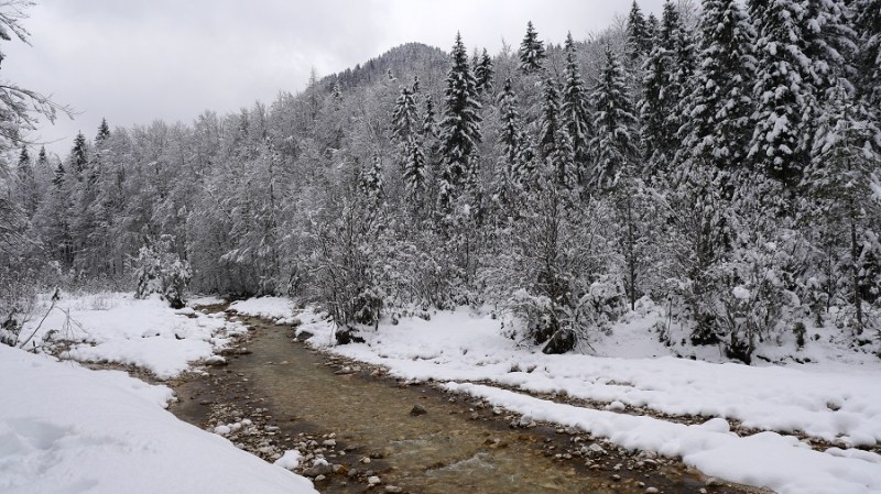 V petek sva se oba razveselila sneženja, saj sva imela že nekaj tednov v mislih kratek izlet do koče v Krnici. A čakala sva na pravi “zasneženi” trenutek, ker je takrat hoja do koče v Krnici (1.113 m) res pravljična. V petek je padel svež sneg, za soboto je bilo napovedano oblačno vreme, nedelja pa sončna. Izbrala sva soboto. Zakaj ne idilično sončno nedeljo? Ker sva si res želela hoditi po sveže zapadlem snegu in ob tem srečati čim manj ljudi. In to nama je v resnici tudi uspelo. Preživela sva pravo pravljično snežno soboto.