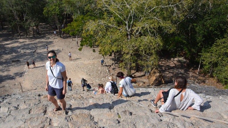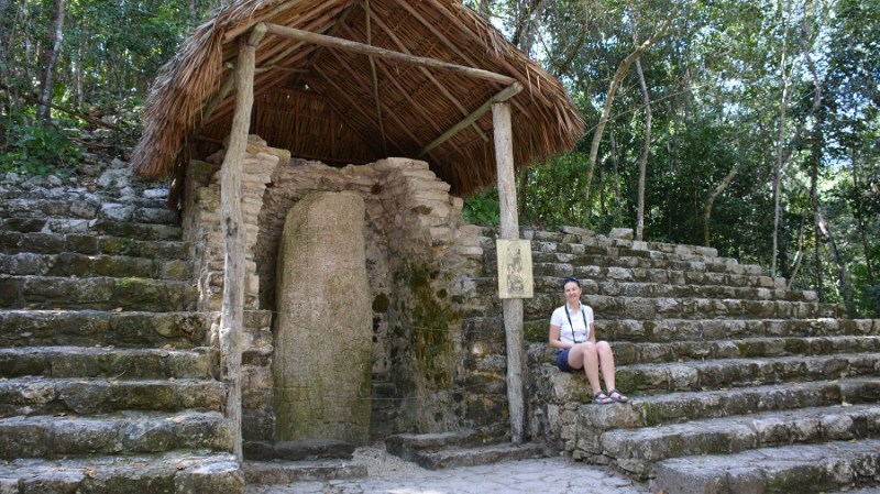 Po odličnem zajtrku v Tulumu sva se odpeljala do bližnjega mesta Coba, kjer sva si ogledala majevske ruševine in piramide. Veliko parkirišče, plačilo vstopnine in vhod v džunglo. Coba je bilo majevsko mesto zgrajeno okoli dveh jezer, jezera Coba in jezera Macanxoc. Mesto bi naj bilo zgrajeno v srednjem in poznem klasičnem obdobju med leti 500 in 900. Večina hieroglifskih zapisov je nastalo v 7. stoletju. Mesto se je raztezalo na površini 80 km² in je bilo zasedeno do 1. stoletja z veliko kmetijsko populacijo. Ocenjeno je, da je imela Coba na vrhuncu civilizacije 50.000 prebivalcev. Pomembno mesto je ostala tudi v postklasičnem obdobju, saj so se zgradili pozneje tudi novi templji, stari pa so se vzdrževali vsaj do 14. stoletja, ko so prišli Španci. Največja zanimivost Cobe je zagotovo 42 metrov visoka lepa majevska piramida, s katere je čudovit pogled na Cobo. Je tudi druga najvišja piramida na Jukatanu, višja je samo v Calacmulu s 45 metri. Mesto je obsegalo več kot 15 stanovanjskih območij, ki so bila med seboj povezana s “sacbeobi“ali povišanimi pohodnimi cestami. Midva sva si majevsko mesto v Cobi ogledala z najetim rikšarjem, saj je res ogromno področje in vam toplo priporočam izposojo kolesa ali rikše. Najprej smo si ogledali najvišjo piramido in sva se nanjo tudi povzpela. Nato pa postanki ob drugih templjih, ruševinah, nogometnem igrišču in v bolj odročnem delu, kjer je na ogled večje število stel. Stele so bile med maji zelo poznane in so dandanes zelo cenjena najdba. Na zanimivih kamnitih spomenikih so Maji klesali dogodke iz življenja.