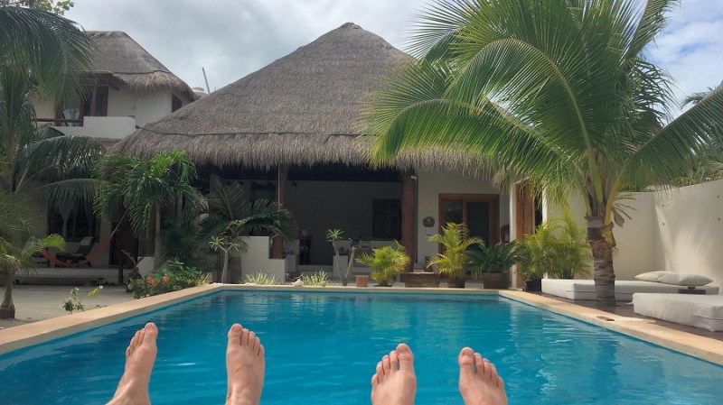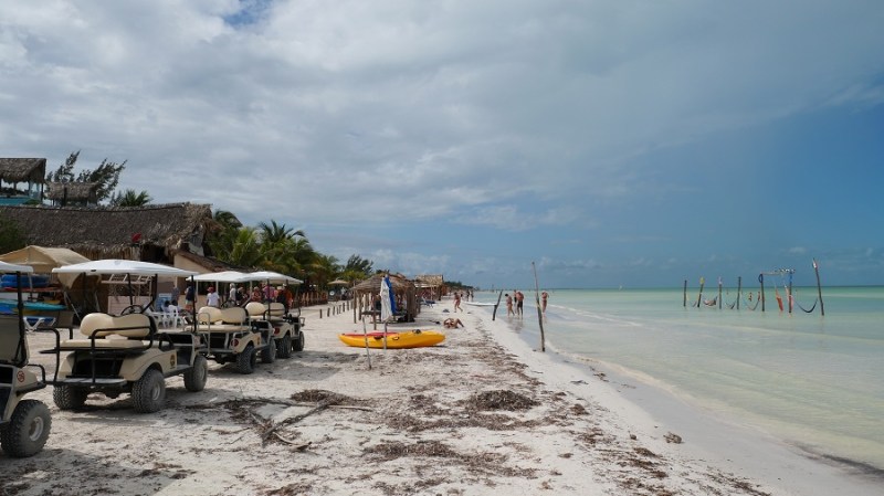 Dan sva kot že običajno začela z odličnim svežim italijanskim zajtrkom in se že zgodaj odpravila na sanjsko plažo do peščene sipine. Na plaži midva ne zdrživa več kot tri ure, kar je bilo dovolj, da sva ujela najboljše vreme. Napoved za popoldan je bila namreč slaba, zato sva izkoristila dopoldansko sonce. Ravno ob opoldanskem kosilu pa je prihrumela prava tropska nevihta. Črno nebo in deževalo je kot pri norcih dobro uro. Po nevihti je bil Holbox popolnoma drugačen. Peščene ceste so postale vodni kanali, morje je bilo razburkano in prineslo je kar nekaj trave na obalo. Nisva se vznemirjala, ampak uživala v svežih kosih manga ob hotelskem bazenu, dolgem sprehodu po plaži in dobri večerji. Holbox je sanjska destinacija.