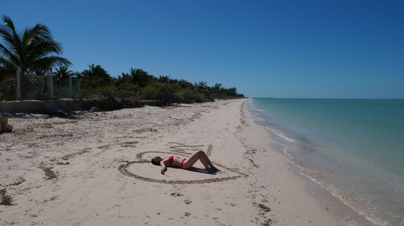 Do Celestuna nisva imela veliko vožnje, tako da sva bila tam že pred deseto uro zjutraj. Zapeljala sva se kar do najine sobe, ki sva jo imela na koncu mesta oziroma popolnoma na severu plaže. Ena zadnjih hiš. Bila sva edina gosta takrat, tako da je bilo super. Sobo sva imela s pogledom na čudovito morje in pred nosom krasno plažo. Skok na plažo ter v čudovito morje. Doživetje za 5 zvezdic. In za povrh – nikjer žive duše. Sploh nisem mogla verjeti, da to lahko še doživiš na našem planetu. Noroooo! Zagotovo naju Celestun še vidi v prihodnosti in prav vidim se tukaj na stara leta.