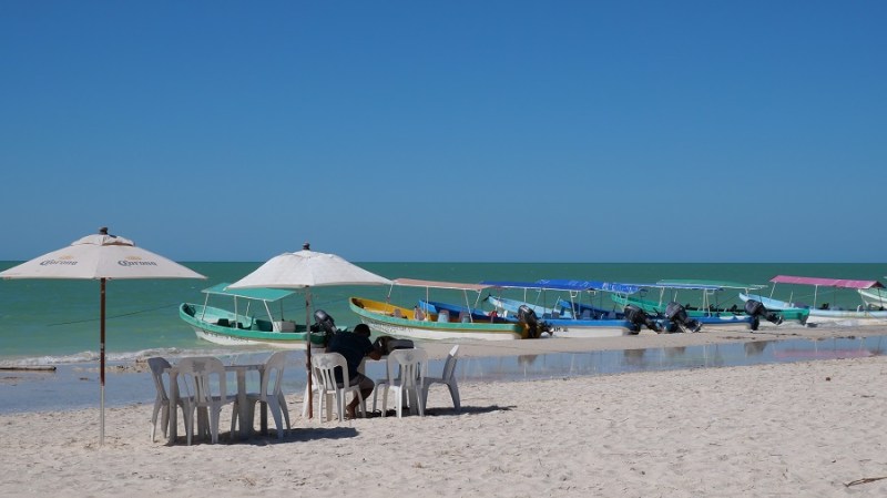 Po ogledu rezervata sva šla v mesto in na plažo na kosilo. Omojbog, kako dobro kosilo in kako zelo poceni. Opala, še bolj ljubim Celestun. Potem pa nazaj do hotelčka, na plažo, zvečer pa sprehod po več kilometrov dolgi plaži ob čudovitem sončnem vzhodu.