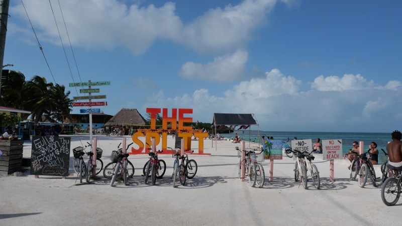 Vesela do ušes sva se odpeljala do pristanišča, od koder vozijo hitri čolni na sosednje otoke in atole. Avto sva pustila na zavarovanem parkirišču takoj zraven pristanišča in se z San Pedro Water Taxi hitrim čolnom odpeljala na Caye Caulker, ki je med popotniki najbolj priljubljena destinacija in tudi cenovno najbolj ugodna. Pol ure vožnje s čolnom in že sva bila na sanjskem otoku Caye Caulker, kjer sva preživela naslednje 4 dni. Nastanila sva se v lepem hotelu z odlično lokacijo, si privoščila odlično kosilo in se potem še kopala na “splitu“. To je žal edina mini plaža Caye Caulkerja in še ta umetno zgrajena. Tudi Caye Caulker je bil poln morske trave, tako da le-tej nisva mogla nikjer ubežati.