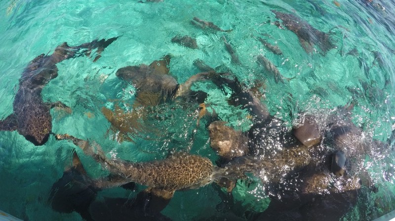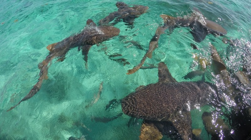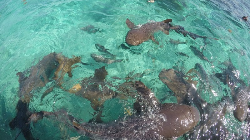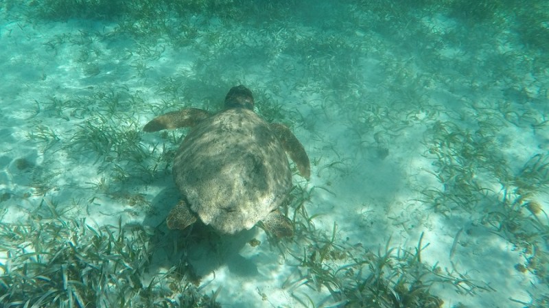 Pri celodnevnem snorklanju smo obiskali več mest. Najprej so nas peljali do grebena in smo videli eno veliko zeleno morsko želvo. 200 snorklarjev in ena želva. Si predstavljate? Raje ne. Potem smo videli še enega skata. Druga točka je bil Hol Chan Marine Reserve, ki je bil tudi najlepši. Veliko rib, zdrave in pisane korale, močan tok, ogromno morske trave na površju in omejen čas. V vodi smo lahko bili le 40 minut, saj so okoljevarstveniki zelo strogi. Bilo je res lepo. Nato smo si ogledali še korale na potopljeni ladji, ki žal niso bile nič posebnega. Vmes pa smo se ustvili še sredi morja na Shark Ray Alley. Morski psi (nurse sharks) so od nekdaj navajeni ostanokov hrane z ribiških čolnov, zato se že ob zvoku motorja čolna vsi približajo čolnu in čakajo na hrano. Ribiči so tukaj čistili ribe in tako so jih navadili na hranjenje. Jaz sem ostala na čolnu, mnogi pa so se podali v vodo. Meni se je to zdelo kar malce sporno z vidika ohranjanja morja in življenj v njemu. Ko ni bilo več hrane, so takoj odplavali stran. Sicer je bilo snorklanje kar precejšnje razočaranje z mojega vidika. Možno je tudi, da sem precej razvajena že glede podvodnega sveta, zato oceno prepustim vam. Sva pa bila s turistično agencijo zelo zadovoljna in jo priporočava.