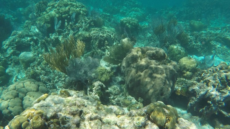 Na otoku Caye Caulker sva si predstavljala ogromno ponudbe za okoliške izlete in snorklanje. Doživela sva hladen tuš. Ponudnikov veliko, a vsi samo eno vrsto izleta – poldnevno ali celodnevno snorklanje s popolnoma enakim programom. Vse ostalo pa čista eksotika in nenormalne cene. Torej sva se odločila za celodnevno snorklanje z eno najboljših agencij Caveman Snorkeling. Cena še vedno visoka, zato tudi pričakovanja. Na ladji z nekaj malega sence nas je bilo 13 in 2 vodiča. Odpeljali smo se na sever do Hol Chan Marine rezervata, ki je del 900 km dolgega koralnega grebena. Drugi največji koralni greben sega vse od severa Jukatana do juga Belizeja in je seveda pod Unescovo zaščito. Na moje veliko razočaranje, razen ene posebne točke, kjer smo res videli nekaj živega podvodnega sveta, je bilo snorklanje precej povprečno.