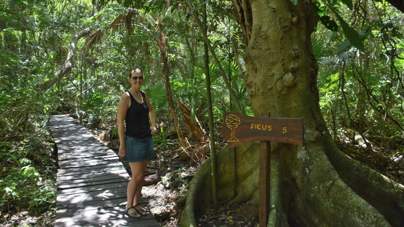Po odličnem zajtrku v Bacalarju sva se odpeljala do majhne vasice Muyil, kjer sva si ogledala majevske ruševine Muyil. Velja za enega najstarejših majevskih krajev na vzhodni obali Jukatana. Mesto naj bi bilo zgrajeno nekje med leti 350 p.n.š. in 1200-1500 n.š. Muyil je imel pomembno vlogo na trgovski poti Karibov. Mesto najdete zelo preprosto, saj je parkirišče takoj ob glavni cesti. To pa je tudi hkrati izhodišče za obisk rezervata Sian Ka’an.