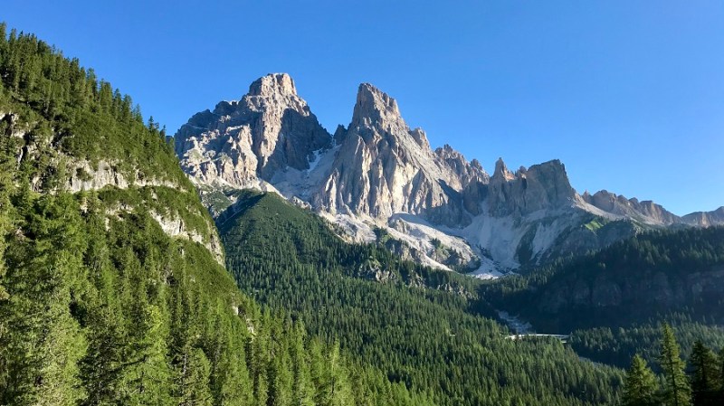 Na poti naprej proti drugemu jezeru Lago di Braies sva se tudi tokrat ustavila pri jezeru Misurina in ob cesti opazovala veličastne Tre Cime z druge strani (moj opis poti okoli vrhov Tre Cime najdete tukaj).