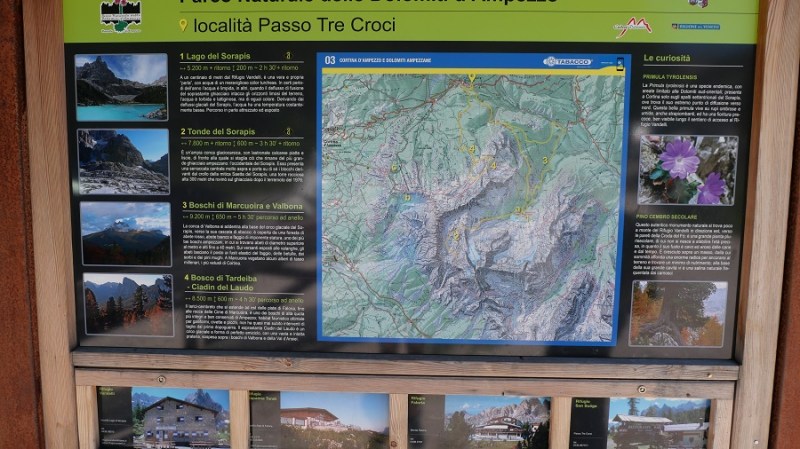 - hoja Passo Tre Croci do Lago di Sorapiss = 11 km / 3 ure za ta hitre / ene 500 višincev gor in dol