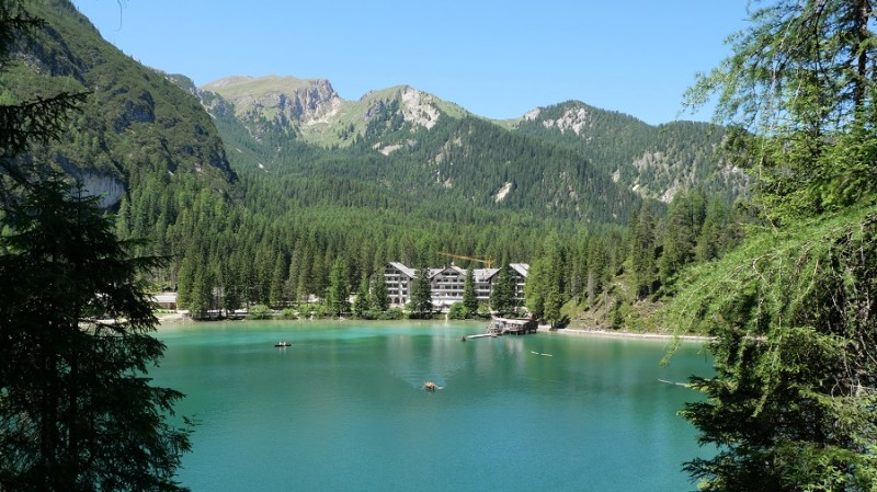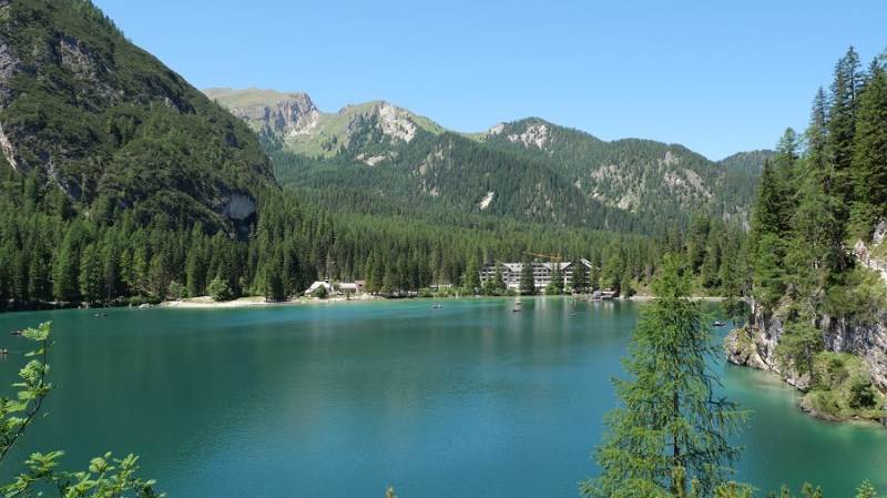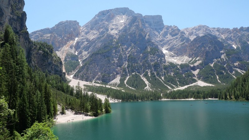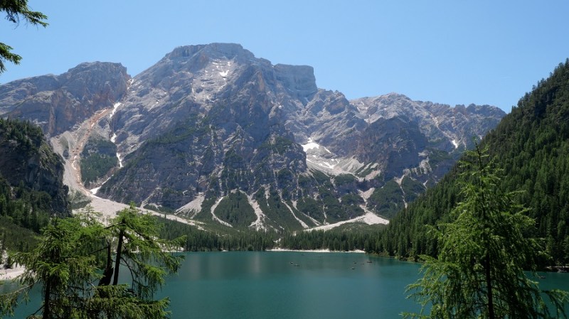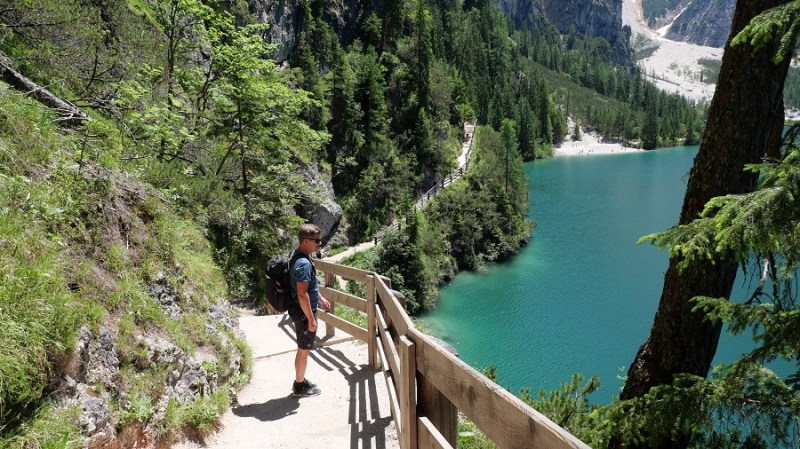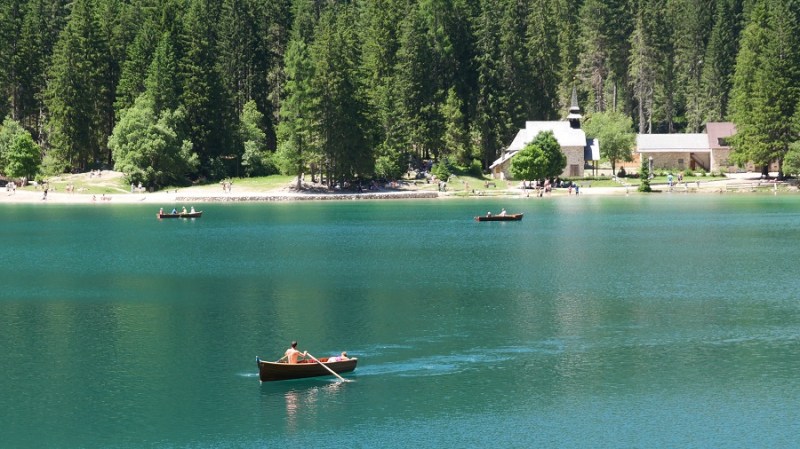 Ob najinem junijskem obisku Dolomitov sva najprej obiskala čudovito turkizno jezero Lago di Sorapis v osrčju Dolomitov. A ker je enodnevna pot od doma do tja precej dolga, sva se odločila za malce daljšo krožno pot in obiščeva še jezero Braies, ki se nahaja severneje v italijanski pokrajini Južna Tirolska. Lago di Braies ali Pragser Wildsee je največje naravno jezero v Dolomitih in je čudovite turkizne barve. Nahaja se na nadmorski višini 1.496 m s pogledom na 2.810 m visoko goro Crodda del Beco. Jezero je dolgo 1,2 km in globoko 36 m. Okoli jezera je speljana krasna sprehajalna pot, ki je dolga 3,5 km. Na precej mestih je tudi možno kopanje, ki vas bo tudi v prijetnih mesecih precej osvežilo. Avto parkirate na velikem plačljivem parkirišču. Jezero je slavno tudi po izposoji lesenih čolnov, ki pričarajo romantično vzdušje obiskovalcem. Ob najinem obisku je bila neznosna gneča ob jezeru, kar naju je kar malce odvrnilo od daljšega zadrževanja. Sprehodila sva se ob levem delu obale, nato pa se po napornem dnevu počasi nadaljevala proti domu.