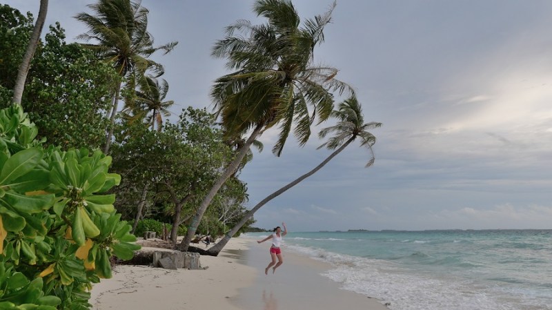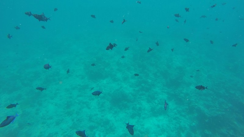 Obisk otoka Dhigurah je bil v prvi vrsti namenjen le enem posebnem doživetju pod vodo. Ob otoku namreč skozi celo leto plavajo kitovci (angl. whale sharki) in jih lahko opazujete med snorklanjem ali potapljanjem. Seveda je to moja velika želja, a se mi je do sedaj vedno izmuznila povsod po svetu. Največkrat nisem bila ob pravem času na pravem mestu. S potapljači sem si rezervirala snorklanje in odšla ob 10h zjutraj z njimi na ladjo. Vozili smo se gor in dol tik ob vzhodni strani obale in upali, da bomo zagledali kitovca. To so največje ribe na svetu in zrastejo v dolžino do 12 metrov. Prehranjujejo se s planktonom, zato ni bojazni, da bi vam kaj hudega storili. Več kot eno uro smo se vozili smo se gor in dol, a žal sreče nismo imeli. Odločili smo se za enourni potop oziroma jaz sem šla na snorklanje ob grebenu. Bilo je lepo in raznovrstno z veliko tropskimi ribami, a zelo malo živih koral. Vse ribice in korale so bile na globini 5-6 metrov, tako da nisem naredila nobene pametne fotografije. A včasih je najlepše le uživati. Po eni uri je prišla nevihta, tako da smo odhiteli na čoln in nazaj v pristanišče. Ponovno nič od mojega plavanja s kitovci. Pa drugič. Imam še en razlog več, da pridem nazaj.