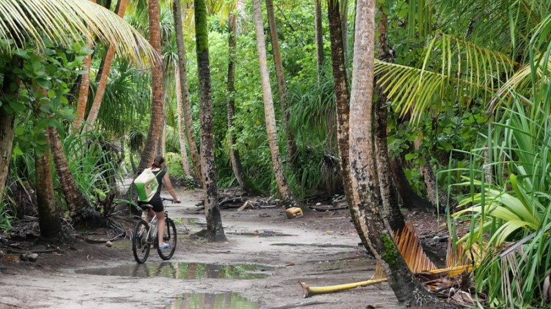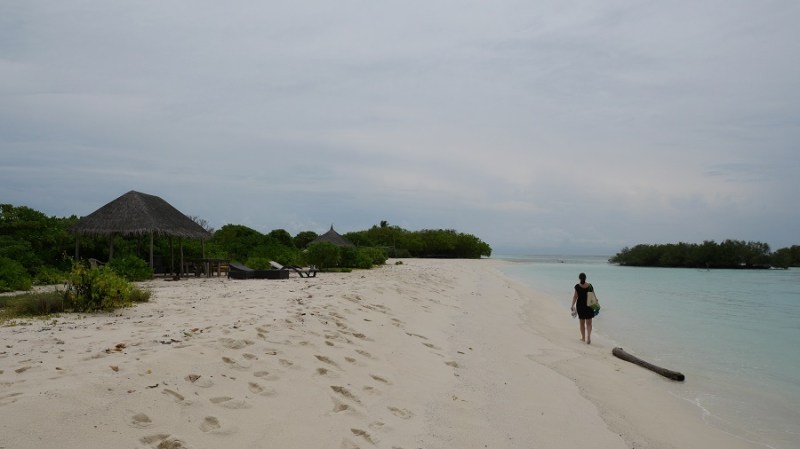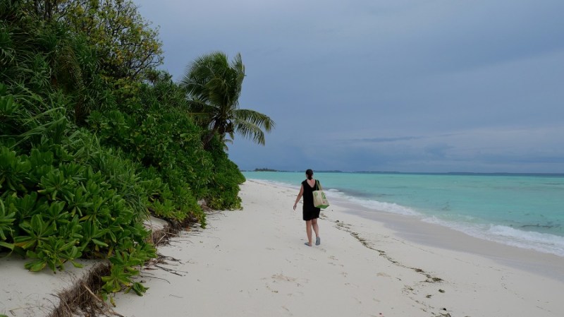 Otok Dhigurah me je takoj zamikal, ko sem zagledala njegovo obliko na zemljevidu sveta. Prvi razlog obiska so bili seveda kitovci, drugi pa velikost otoka in njegova oblika. Otok je namreč dovolj velik, da se lahko po njem vsak dan sprehodiš, hkrati ima kilometer dolgo neobljudeno in povsem divjo bikini plažo, za povrh pa še svojo neskončno morsko peščeno sipino, ki se angleško imenuje “sand bank”. Hkrati je raj za potapljače, saj njegova neposredna okolica ponuja kar 36 nepozabnih potapljaških točk. Do sipine je potrebno s kolesom skozi džunglo. Potrebovala sva dobrih 20 minut s kolesom, nato pa še peš po plaži in skozi gosto grmičevje do sipine. Uredili so sicer stranišča in na voljo je nekaj ležalnikov, ki so popolnoma samevali. Bila sva ponovno sama, uživala v razgledih in se čudila lepoti narave. K sreči je bilo oblačno, da sva lahko preživela nekaj časa brez sence. Kopanje, uživanje in trenutku samo za naju ob čudovitih turkiznih barvah, ki jih oko nikoli ne pozabi. Čudovito!