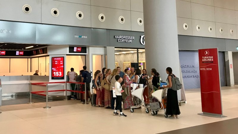 Že med nakupom letalske vozovnice sem si izbrala let domov iz Istanbula v Ljubljano z daljšim postankom v Istanbulu. Razlog je bil v brezplačnem vodenem ogledu glavnih znamenitosti Istanbula s Turkish Airlines. Če imate med povezanima leta 6 – 24 ur časa, potem se lahko po pristanku oglasite na okencu Turkish Airlines in izberete bodisi ogled mesta bodisi hotelsko nastanitev na letališču. Hotel Desk na letališču najdete spodaj popolnoma ne levi strani oziroma se držite tabel za hotel. Midva sva pristala zjutraj ob 5h po lokalnem času, si privoščila zajtrk na letališču in se ob 7h zglasila na okencu. Za izlete ne potrebujete nobene vnaprejšnje rezervacije, tako da vam potem oni določijo izlet, kateri je primeren za vaš čas. Midva sva imela več kot 11 ur časa do leta za Ljubljano, zato sva dobila srednje dolg izlet, ki je trajal od 8.30 – 15.00 in je popolnoma brezplačen.