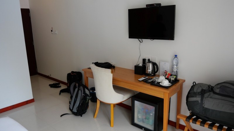 Prvi hotel na Maafushiju je bil Arena Hotel, ki je na otoku res med boljšimi in dražjimi nastanitvami. Ima kar nekaj sob in lepo bikini plažo pred vhodom, kar je praktično najpomembenje. Imeli so tudi odličen samopostrežni zajtrk in veliko izbiro enodnevnih izletov, ki jih sami organizirajo. Malce so naju motili sicer kitajski turisti, a sva vsak dan šla na izlet, tako da sva jih videla res samo zjutraj pri zajtrku. Soba je bila zelo lepa, moderno opremljena, nova kopalnica, topla voda in celo balkon s pogledom na morje.
