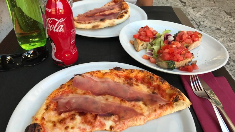 - večerja pica, bruskete, Coca Cola = 19,50 EUR