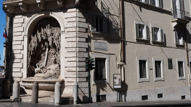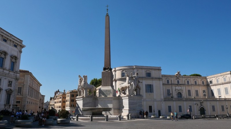 Nadaljevala sva proti Kvirinalski palači in med potjo naletela na posebne vogale zgradb, ki imajo vsak svojo prekrasno fontano (San Carlo alle Quattro Fontane). Nato pa prispela do trga Quirinale, kjer je palača in res lep obelisk. Nahaja se na kvirinalskem griču, tako da imate lep pogled na rimske zgradbe in ulice. Palačo je dal leta 1573 zgraditi papež Gregor XIII in jo uporabljali kot papeško rezidenco do leta 1871. Takrat je postala kraljeva rezidenca na novo ustanovljene Kraljevine Italije. Palača je že od leta 1947 ena od treh uradnih rezidenc predsednika Italije.