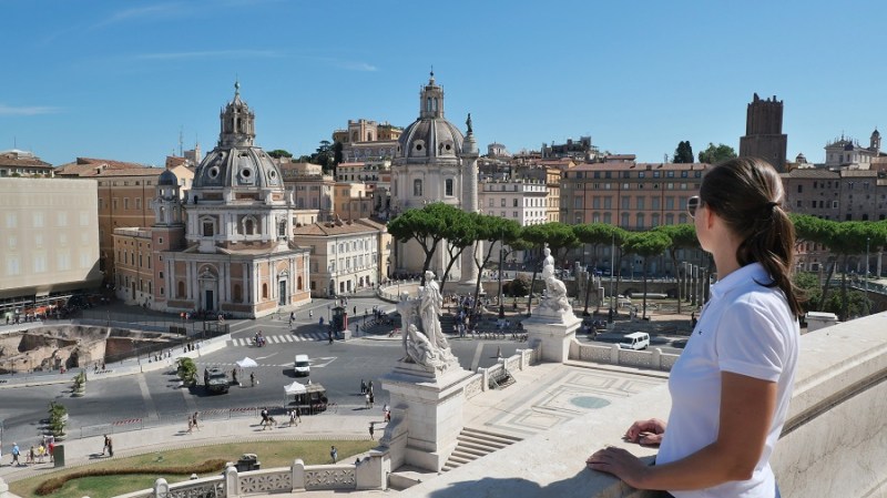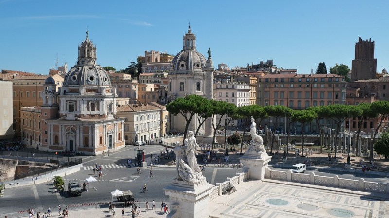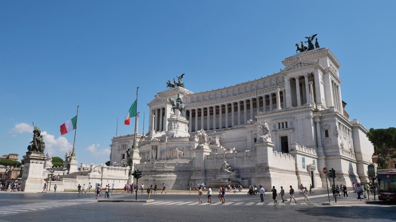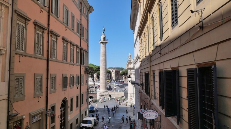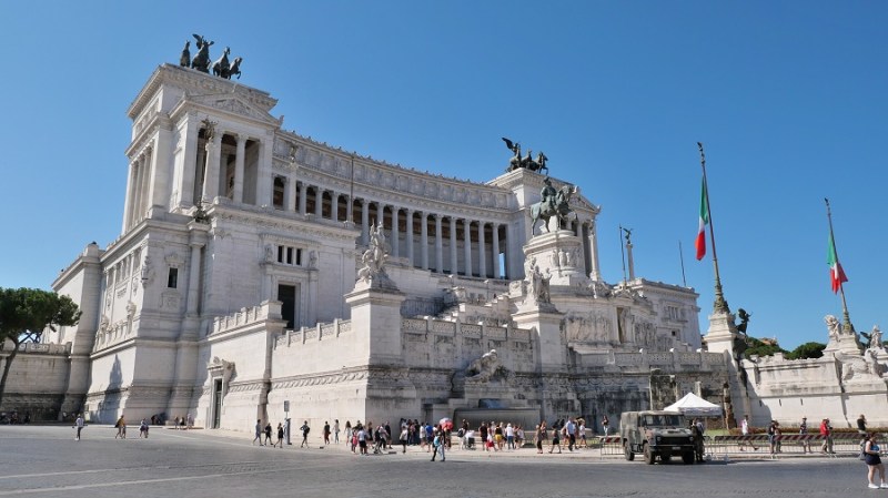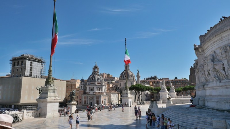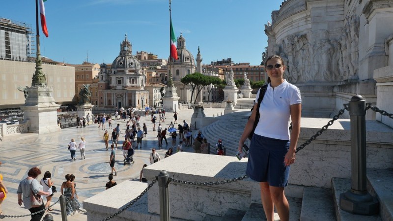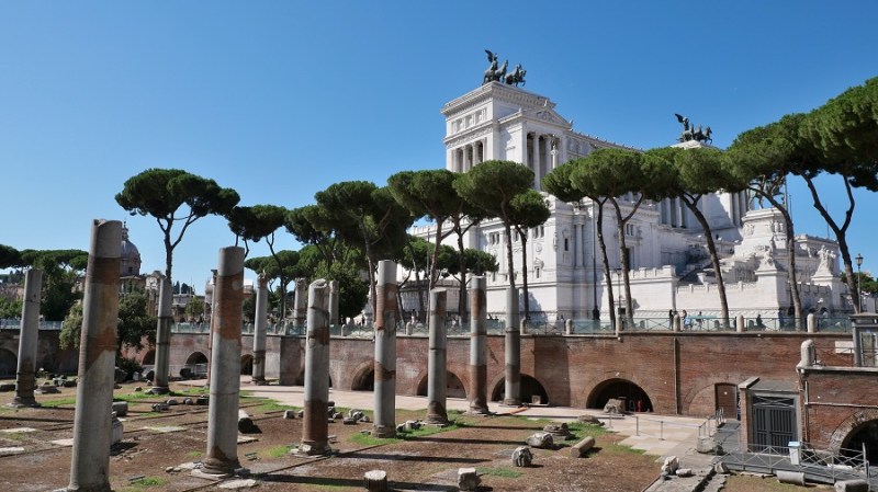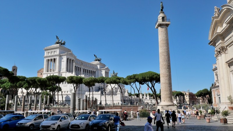 Čez nekaj trenutkov sva že zagledala prve zgodovinske ostanke starega Rima in bila navdušena. Pot sva namreč nadaljevala do Beneškega trga, kjer se nahaja tudi lepa cerkev Santa Maria di Loreto ter ogromen bel spomenik Viktorja Emanuela II. Trg velja za najpomembnejšega in je središče celega mestnega dogajanja. Na trg vodijo vse najpomembnejše ulice in ceste: Via 4 Novembre, Via del Plebiscito, Via del Corso in Via dei Fori Imperiali. Glavni na trgu je veličasten spomenik, ki pa so ga gradili med letoma 1895 in 1911 po načrtih arhitekta Sacconija. Posvečen je bil 50. obletnici združitve Italije in v spomin prvemu kralju združene Italije, Viktorju Emanuelu II. Po prvi svetovni vojni so spomeniku dodali še grob neznanega vojaka, tako da ima danes spomenik tudi vlogo oltarja domovine.