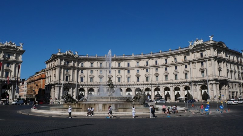 Postaja Termini se nahaja v strogem središču mesta, zato sva kar peš nadaljevala najino raziskovanje glavnega mesta Italije. Rim je precej majhen in ga lahko lepo brez javnih prevozov prehodite v treh dneh, če imate vsaj nekaj kondicije. Po nekaj korakih sva prišla do trga Republike, kjer je lepa fontana ter ob njemu stoji lepa cerkev Svete Marije, ki je bila zgrajena v 16. stoletju po načrtih Michelangela.