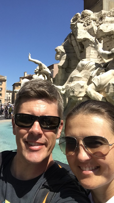 V Rim in Vatikan sva se odpravila z letalom iz Trsta in sicer v zgodnjih jutranjih urah. Najprej do letališča z avtomobilom, nato pa sva imela polet z Alitalio iz Trsta že ob 7. uri zjutraj. Tako sva v Rimu pristala čez eno uro, hitro našla avtobus za center mesta na glavno postajo Termini in ob 9h že začela z ogledom mestnih znamenitosti. Bil je krasen dan. Peš sva se odpravila naprej do trga Republike, nato pa do mestne hiše in naprej do Beneškega trga ter si privoščila kosilo na trgu s pogledom na zgodovinski Panteon. Po ogledu notranjosti sva se sprehodila do trga Navona z lepimi fontanami ter nadaljevala med prijetnimi ulicami do slovitih Španskih stopnic. Le nekaj ulic sva bila oddaljena od čudovitega vodnjaka Trevi, kjer se je seveda trlo turistov. Seveda nisva nič drugega pričakovala in se smejala množici na vsa usta. Lepo počasi sva se odpravila do najinega hotela, ki je bil v mirnem in bolj bogatem predelu. Privoščila sva si pico in odličen italijanski sladoled v pravi slaščičarni. Njami.