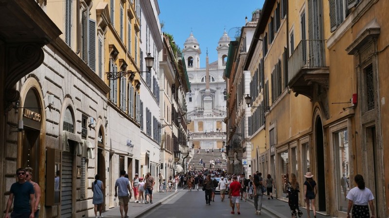 Najbolj nakupovalna ulica Rima vas pripelje do Španskega trga s slovitimi Španskimi stopnicami. Španske stopnice štejejo 138 stopnic in veljajo za najširše stopnice v Evropi. Posedanje žal ni več dovoljeno na stopnicah, na kar opozarjajo tudi zelo strogi policisti. V 18. st. sta načrt zanje naredila arhitekta Francesco de Sanctis in Alessandro Specchi. Veljajo za eno najbolj priljubljenih turističnih točk v Rimu. Na trgu se nagaja tudi lepa fontana, na vrhu stopnic pa cerkev, ki si jo je seveda vredno ogledati. Če ni drugega razloga, vsaj da si odpočijete noge in se malce ohladite od vročih rimskih ulic.