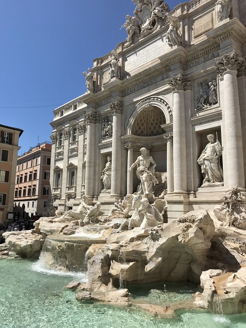 Zagotovo ena največjih znamenitosti pa vodnjak Trevi. Že ulice, ki so vodile do vodnjaka, so to izrazito nakazovale. Prodajalci na vsakem vogalu, italijanski sladoled ter množice turistov. Baročni vodnjak Trevije zasnoval v 18. stoletju Nicola Salvi in se z reliefom device poklonil stari vraži. Z njeno pomočjo so odkrili vodni izvir, ki vodnjak Trevi napaja še danes. Njegovi popularnosti pa so prispevali tudi filmi in kot pravi popevka Tree Coins in the Fountain, mora vsak, ki se želi vrniti v Rim, v vodnjak čez ramo vreči kovanec. Ni kaj dodati – res lep vodnjak!